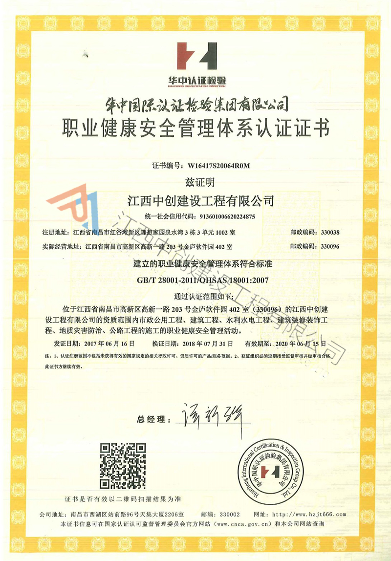 • 職業健康安全管理體系認證證書2018-08-17